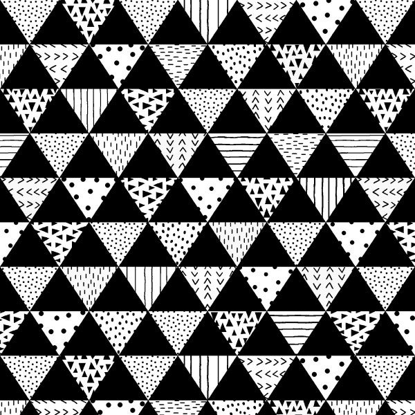 Puuvillakangas Ilona, 112cm, Kolmiot mustavalkoinen