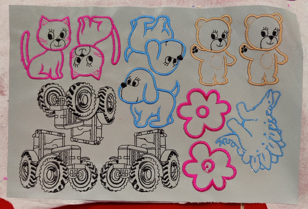 Heijastinkankaalle kirjaillut kuviot.